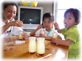 本日、陸番中のお店に来てくれたかわいいお客様。 ナオコさんと、ルカちゃん&イッサくん。 ナオコさんが差し入れて下さった 「琉球スイーツ庵」の限定プリンを いただきました〜。