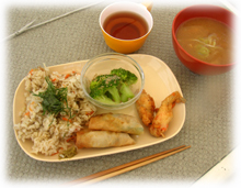 一旦港に帰ってランチタイムでーす。 今日は五目ご飯と春巻きなどのプレート。 おかわりしてくれてありがとー。
