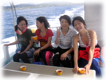 今日のゲストさんは・・・・ 去年の10月以来の チアキさんとナツミさんがお越し下さいました。 そして初ばななっ!の、美人姉妹。 トモコさんとアイコさん。 お姉さんのトモコさんはダイバーさんで、 妹さんのアイコさんは・・ 昔体験ダイブでの恐怖トラウマがあり、 今日はシュノーケルでご参加くださいました。 今日はヘルプスタッフのナオちゃんが担当です。 。 良いお天気になって良かったねー。 。 。