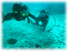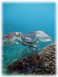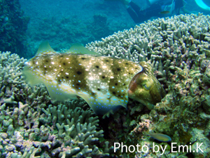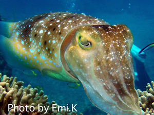 バースデーケーキでお祝いしました。エミちゃんは、コブシメのハッチアウトも産卵も見ることができたバースデーダイブでした〜。