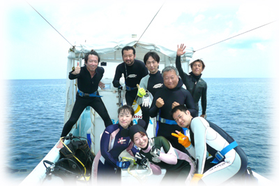 「大阪ばなな会」で顔見知りの方も多い大きなダイバー・ゼンさんに見送られ・・・賑やかに出港です。