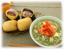 今日は、ニラタマキムチうどんと、