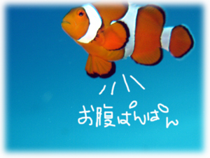 クマノミのオナカには、はち切れんばかりの