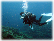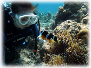 10年目にして6本目のカオルさんも、 だんだん慣れてきました〜。 ダイビングの楽しさ、想い出しましたか〜。 魚はなんだか模様が気持ち悪かった らしいけど、 でも、ついつい見てしまう・・カオルさんです(笑)。