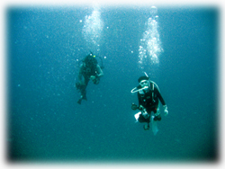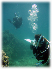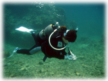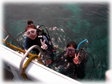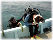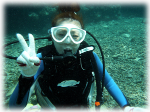 カオルさんは、イントラ・ナオちゃんと、 まずは潜る基本を復習します。