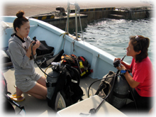 本日のゲストさんは・・・ アドバンス講習を受けられる フィッシュアイ派タクヤさんと 105mmマクロ派のアサミさん。 なんとまぁ、高級デジ一眼を 「それぞれに」お持ちですっ! 今日の課題は・・ 「ディープ」「ナビ」「フォト」。 そして・・・リフレッシュ講習は、 10年前グアムで講習を受けて ダイバーになって以来、 1本も潜っていないというカオルさん。 基本をもう一度一通り復習して、 今回、ダイバー復帰を目指しますっ。