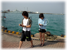午後は・・・サンゴの綺麗な崎枝へ。タクヤさんのフィッシュアイが活躍。 フォトの講習、F値を変えて色々やってみました。