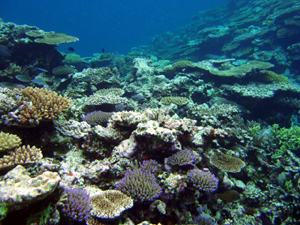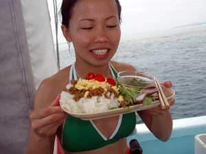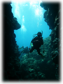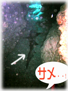 ランチ休憩後、午の方石にてシュノーケリング。 その時、冬によく見かけるホワイトチップシャークがいた〜っ・・ ・・と言うことでサメに期待して、 午後からはココにエントリー。 エントリーしてホワイトチップに逢い、 名物の大きなアーチへ・・