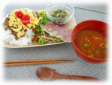 今日のランチは ドライカレープレートとミネストローネ。 ガッツリどうぞ〜 。