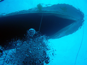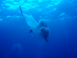 しかし、 最近出る確率が落ちてると言うので、今度はウチラがドキドキしつつ・・が・・・アンカーを打ちに入ったら船の下をゆっくり泳いでいた〜・・・・。こりゃみんな見れるぞ〜と嬉々エントリー。