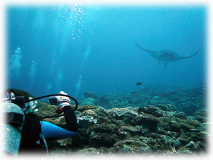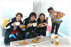 無事マンタを堪能し、ユカリさんはしっかり写真も撮れました。満足気な皆さんと・・静かな浅瀬でランチタイムです。