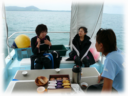 ダイビングにはよかったねー・・と言ってたら・・昼過ぎからまた梅雨に戻って小雨がしとしと・・ 。 だけど、今日は 楽しいレディーズDAYとなりましたっ〜!!