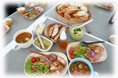 タンドリーチキンや生ハム、卵タルタルの