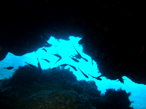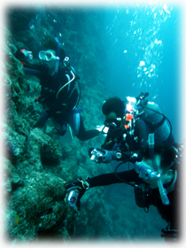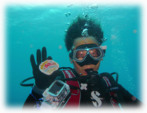このポイントでツトムさんは50本目を迎えられました〜。安全停止中に記念撮影をし、エキジットです。。