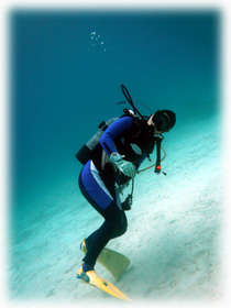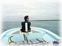 竹富あたりの水は今ひとつのようだったので、きれいな水を求めて黒島へ・・。その甲斐あって潜ってみれば、透明度25mオーバー点在する根を周りながら、小さな生き物中心に観察シマシタ。それぞれに自分の好きな魚を探したり、写真を撮ったり・・白い砂に寝転がったり・・。今日はさまざまな絵エビ系、そして幼魚がタクサン目につきました。1時間オーバーの1本目でした。