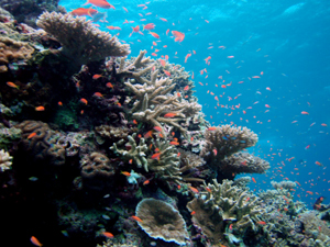 珊瑚とアカネハナゴイ Photo by Mihoさん