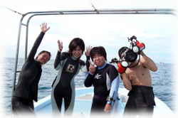 今日は・・。 きのうに引き続きの、 雨オトコの汚名挽回?晴れオトコ? フクダンゴさん(笑) でーす! 今日も105mmマクロ銀塩で撮りまくりっ! そして、道産子ばなな会員マユちん。 潜るストレスがなくなってきて、 そろそろ・・ 「ダイビングが楽しすぎる病発症」の頃です。 。 そして、その楽しすぎる病が進行しすぎて、 あれから一ヶ月も空けずに・・ また来てくださったジュリさんっ。 この一ヶ月だけで なんと 30本を超えるそうです・・ 今日はっっ・・・晴れましたぁぁぁっっ!!