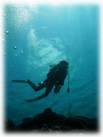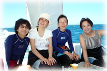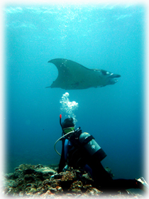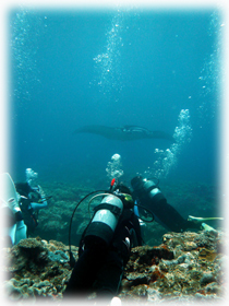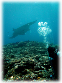 デザートの甘〜いパインを食べながら、まったり休憩・・。ツユコさんは、やっぱりシュノーケリングですっ。そしていよいよ、マンタポイントでのブリーフィングをすませて、リクエストのマンタポイントに向かいます。4名中3名がまだ見たことない・・・期待は膨らむ一方・・でてくれよーぉ〜・・。。