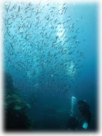 今日見た生き物は・・・クロユリハゼの幼魚、テングカワハギ、クマノミ各種、ノコギリダイ、アカメハゼ、キビナゴのすごい群、 |