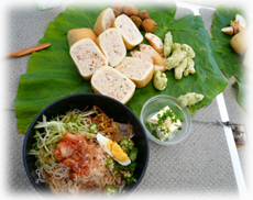 今日は冷麺風ピリ辛そうめんと冷たい島豆腐。