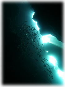 相変わらず、キビナゴノ群れがキラキラと群れてました。どうやら、ダイバーの吐く泡を魚に間違えて集まってきているようです。。