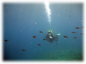 エキジットし開口一番の台詞が・・「ダイビングって言うのは・・・・魚をみるだけなんか??」だったそう・・(笑)