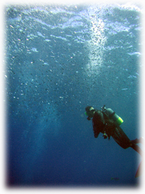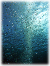 オキナワスズメダイなどの各種スズメダイのすんごい群、キビナゴノキラキラの群、アオリイカのおいしそうな群、