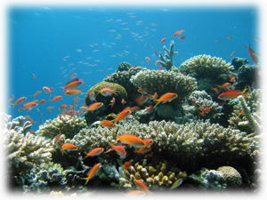 タコ、キンギョハナダイの群、アカネハナゴイの群、アマミスズメダイの群、デバスズメダイの群、ヨツメトラギス、