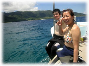 体験ダイブのトモミさんもバッチシもぐれました。去年は台風で残念でしたが、今回リベンジダイブ〜。