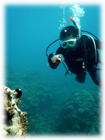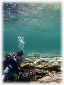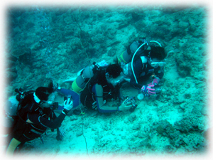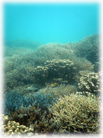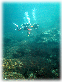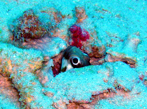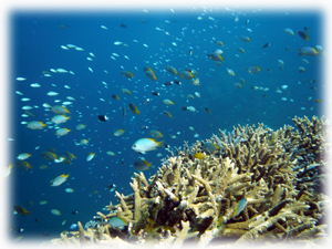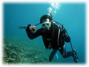 お次は・・様々な種類の珊瑚びっしりのオランダ口から少し戻り・・・浜島近くのポイントへ〜。ここは浅い砂地なのでまったり潜ります。