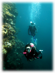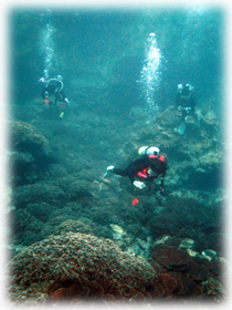 地形と珊瑚のオランダ口、2チームに分かれて潜ります。