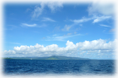 小浜からは西表島の山々がくっきり・・。高い島が西表島です。