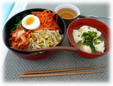 今日はビビンバ丼と、冷た〜いゆし豆腐汁。
