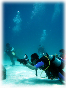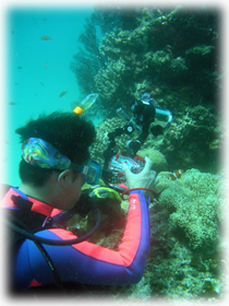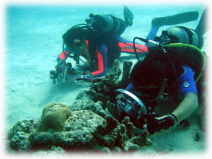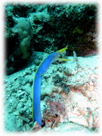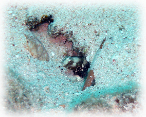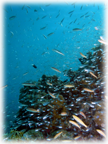 水は今一つではありましたが、被写体たっぷりの黒島でした。パッチリーフのそれぞれの根には、スカシテンジクダイが爆発しています。そこに、ぐるくんの幼魚やカマスの幼魚、ヨスジフエダイの幼魚などちびたちが加わり、夏らしくにぎやかさを増していました。スカテンは、口内保育している雄も多く見られ、まだコレカラ数が増しそうです。そして・・・そんな彼らを、アオチビキやカスミアジ、ハタたち、ハダカハオコゼやハナヒゲウツボたちが狙っているのでした。
