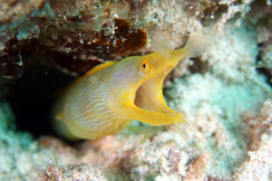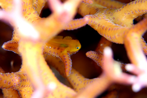 今日みた主な生き物・・ハダカハオコゼ(黄色、黒、白、各数個体)ナンヨウハギ、ミヤケテグリ、ハナヒゲウツボ(青と黄色)