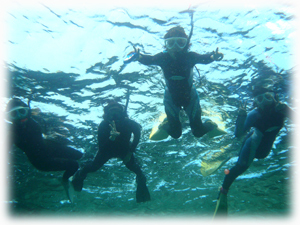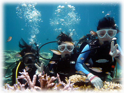 今日はマンタにも逢うことが出来たし、体験チームも、ファンチームも、水面水中で珊瑚や魚を楽しみました。