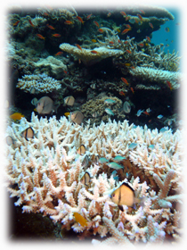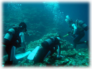 特に珊瑚の白化を見てもらいました。これが現実。異常気象のツケがジワジワと・・・・。
