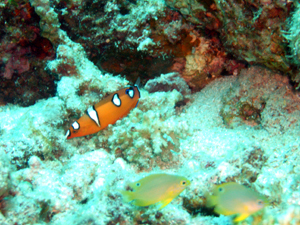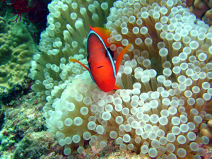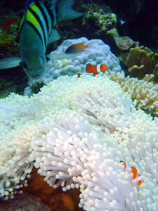 白化したイソギンチャクとカクレクマノミ photo by イワオさん