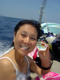 今日のゲストさん。 昨日に引き続きのカスガさん。 そして、同じく2日目の タカヒデさんとマイコさん。 昨日は、念願のマンタに逢えました。 そして、7月末にお子さんたちと ファミリーダイビングをされた イワオさんとマミさんご夫妻が 10日あけてまたお越しくださいました 〜。 今度は大人のダイビング♪ そして地元から、 田中のお母さんが久しぶりに いらしてくださいました。 今日は、竹富、黒島、パナリ島の 3島巡りダイブになりました〜。