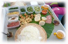 今日はヒエヒエのおそうめんっ。 ヤエヤマのカマボコや ジューシーおにぎりとともにどうぞ。 デザートはジューシーなパイン。