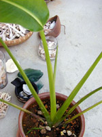 朝ふと見るとまたオウギバショウに新しい葉っぱが・・うれしいな。