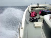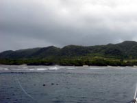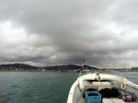 今日は、体験とファンのゲストさんと西へ向かった。台風来るっていう割に、海は静か・・。すこぅしうねりを感じる・・。