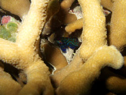 そして3本目。いつものポイントの隣のリーフに挑戦。ココもサンゴが半端ではないっ。入ってみると、すんごいグルクンの数・・・。
