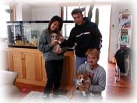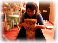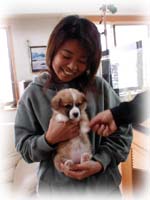 翌朝10日・・・・今日は3人で、本部にある「美ら海水族館」へ向かう予定。が・・・突然、高良クンの愛犬が帰ってきたぁ〜!! 高良クンが飼い始めたばかりのコーギー犬の赤ちゃん。まだ生後40日だって・・・。妹に預けていた赤ちゃんが帰ってきた。あまりのかわいさに、もう大騒ぎ〜! 出るに出られないっ・・・。