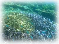 少し船から離れて下を見たら・・ 珊瑚がびっしりだよぉ・・・。