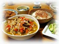 彼は体調が今ひとつ。 夏の疲れが出てきている。 朝ゴハンは、胃腸に優しい野菜と玄米の雑炊を・・。