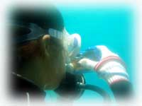 まずは、黒島でブリーフィング後、シュノーケリング。 その後、少し手前に戻ってマルグーにて、 いよいよ 体験ダイブ開始。
