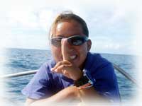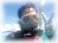 今日は、「水が怖くて泳げないのですが・・・体験ダイビングでしたいのだけど・・」と、台風前におそるおそる申し込んでくれた メグミさんと体験ダイビングへ〜。彼女は、大型台風前からの島滞在で、長いバカンスを楽しんでる。台風があけてから、小浜や竹富、西表などの離島を巡り、結構アクティブに動き回っているらしい。台風後に到着したお友達は今日帰る・・と言うことで、独りでの参加。聞くところに寄ると、メグミさんは大阪の茨木の人。ワタシの実家からすぐちかーーいっ。ペンション美崎にお迎えに行き、美崎のお母さんにアイサツをしてから港へ・・。