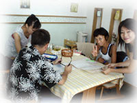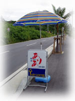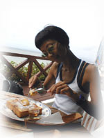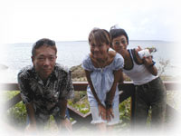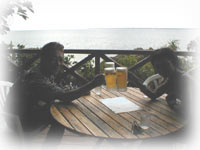 竹富島が望めるテラスで、三人でゴハンしながら、のんびりとおしゃべり・・・。