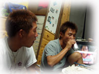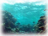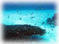 透明度は、1m〜5m。イダチンとはぐれそうになること数回。そう、たった二人でも少し離れると見えなくなる・・。イトヒキテンジクダイのブルーの目がホントにキレイ。スゴイ数の群れ。